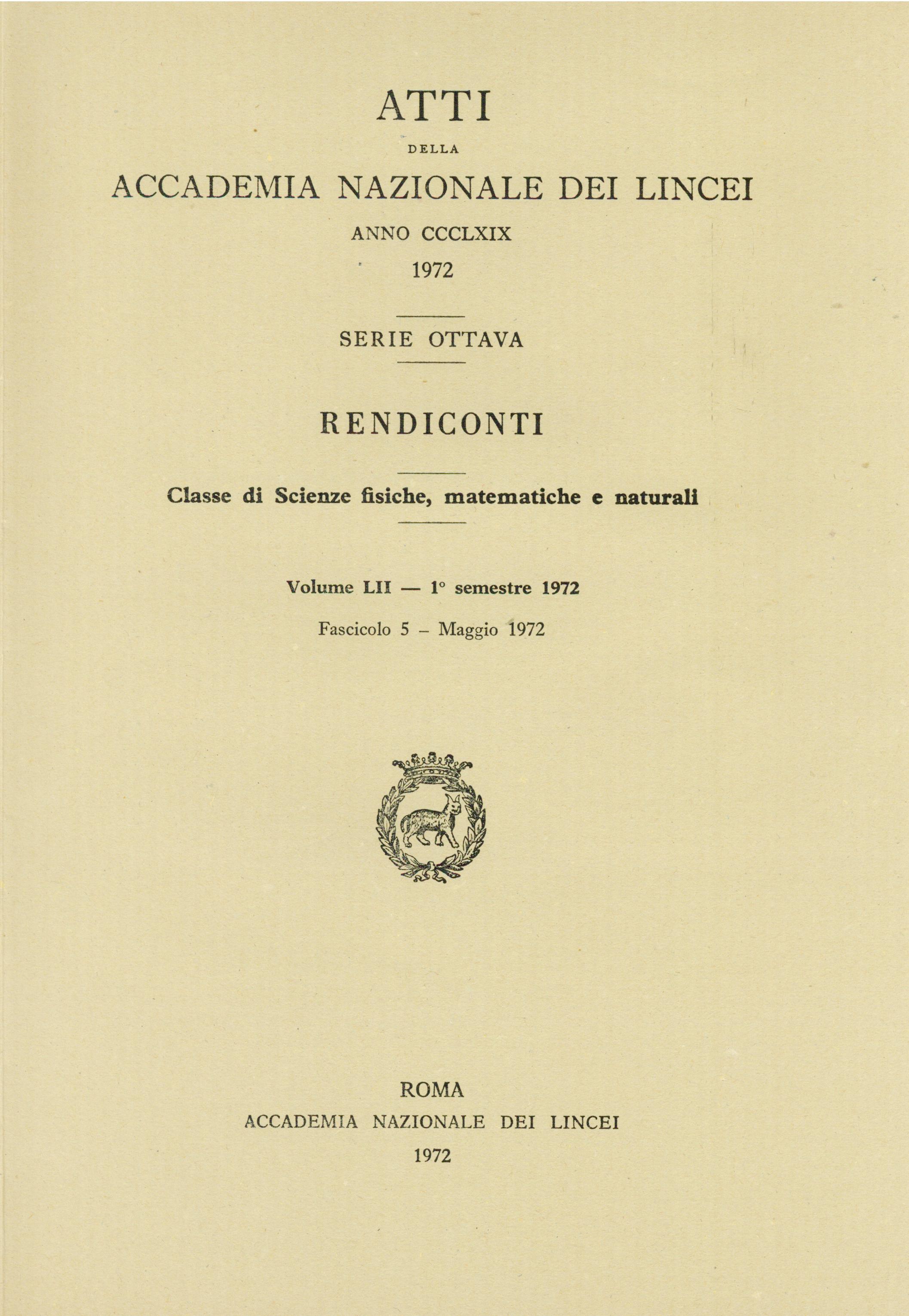 | Home -> Atti Accad. Naz. Lincei Cl. Sci. Fis. Mat. Natur. Rend., Serie 8 -> Vol. 52 (1972), n. 5 |