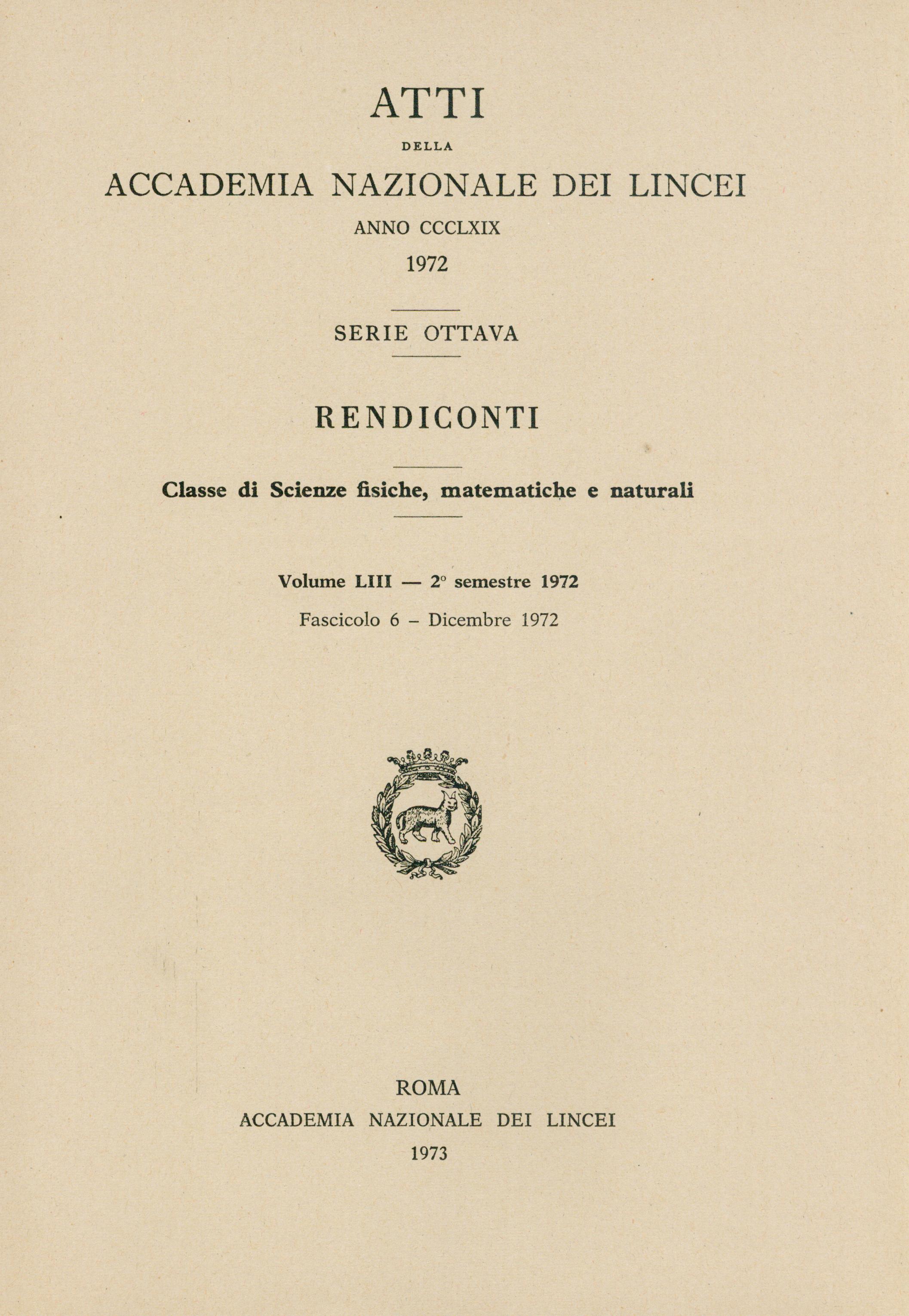 | Home -> Atti Accad. Naz. Lincei Cl. Sci. Fis. Mat. Natur. Rend., Serie 8 -> Vol. 53 (1972), n. 6 |