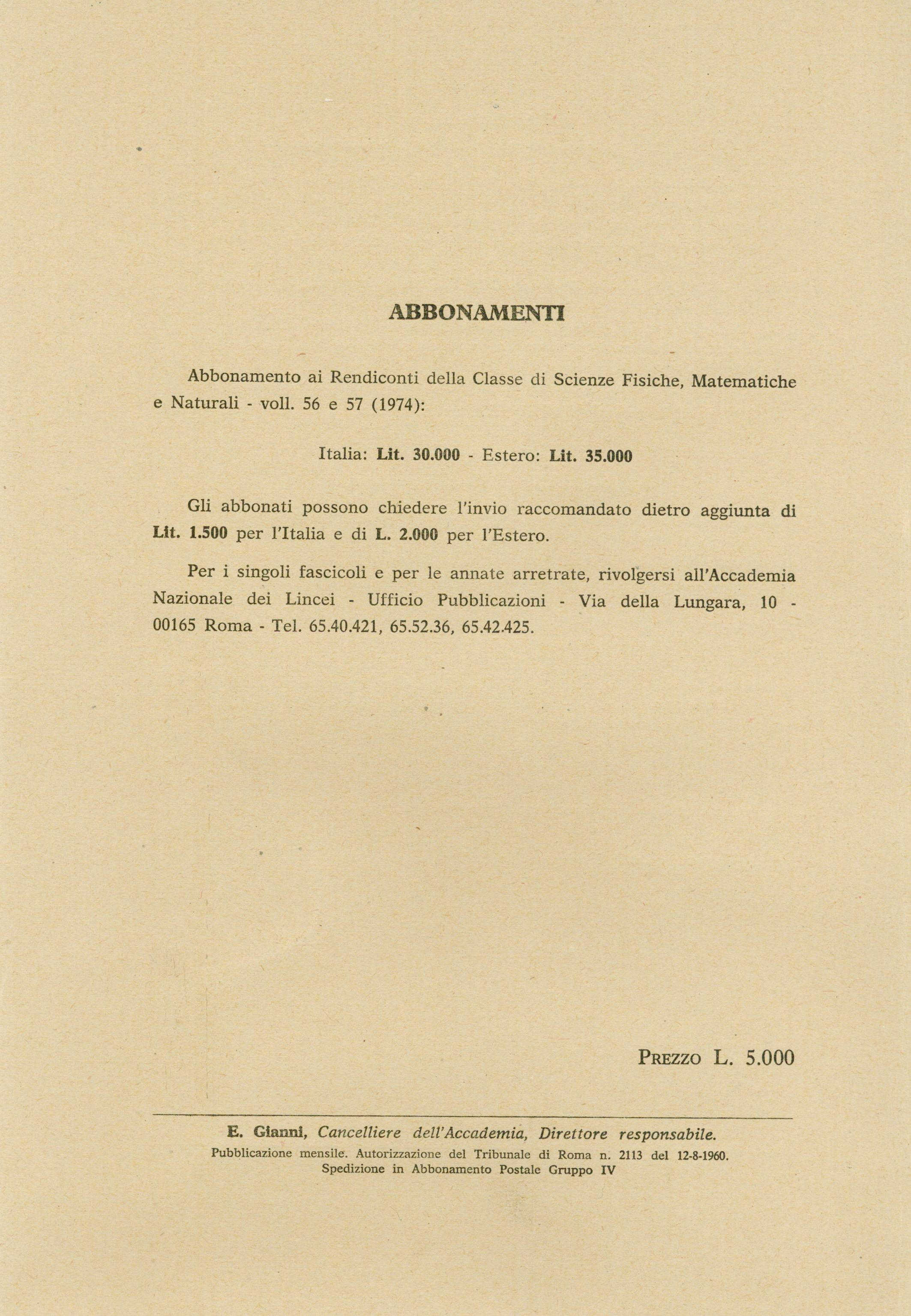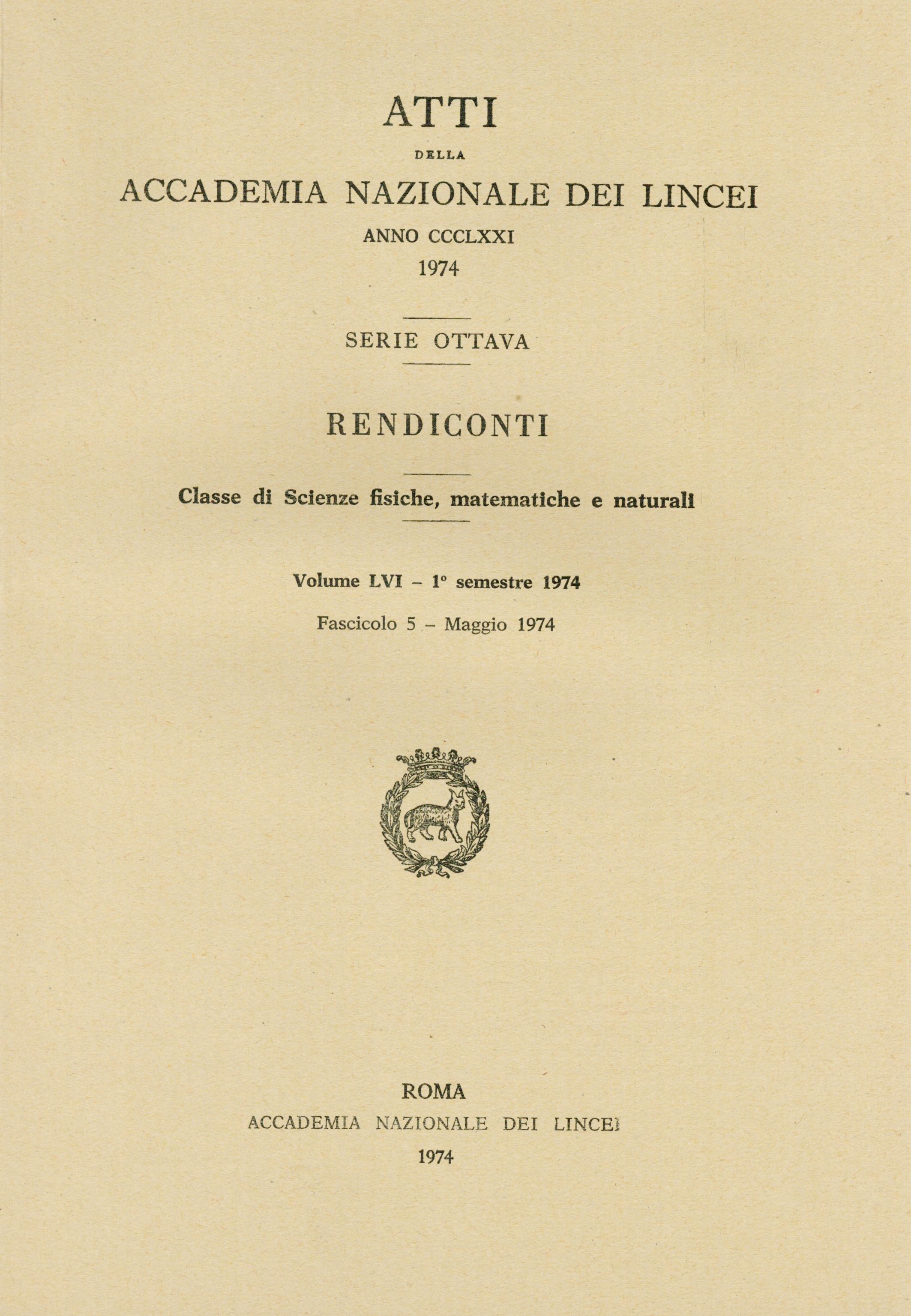 | Home -> Atti Accad. Naz. Lincei Cl. Sci. Fis. Mat. Natur. Rend., Serie 8 -> Vol. 56 (1974), n. 5 |