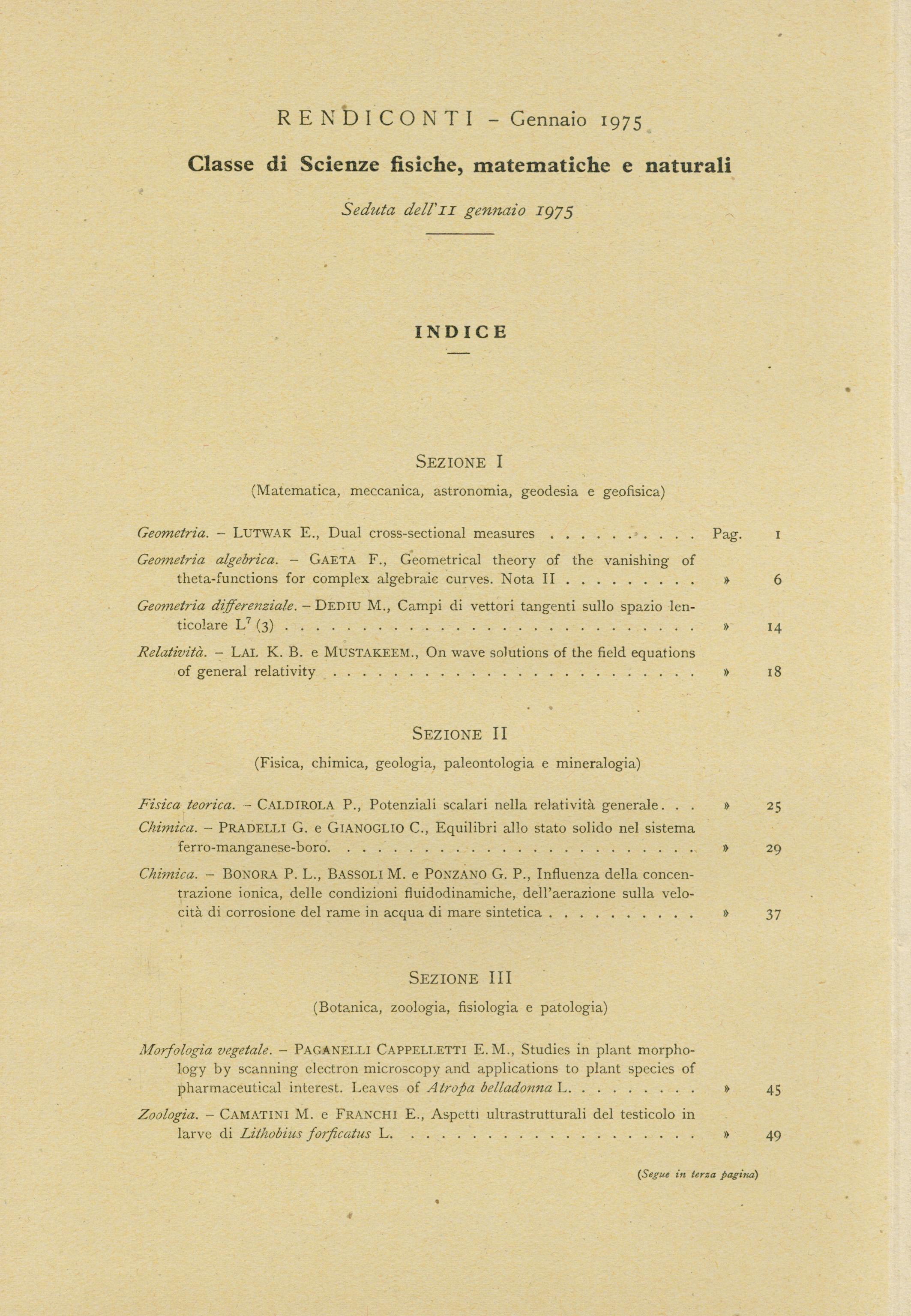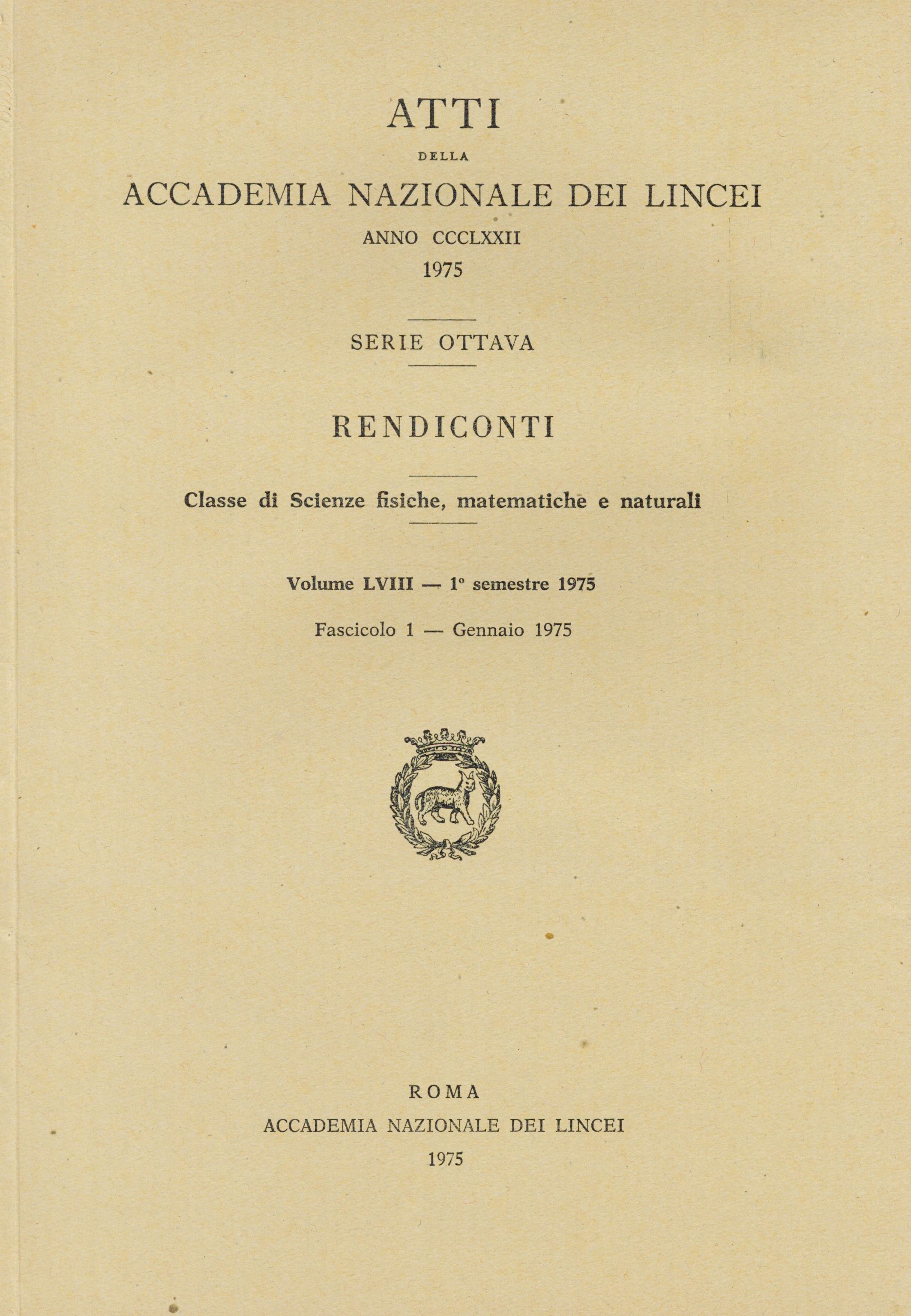 | Home -> Atti Accad. Naz. Lincei Cl. Sci. Fis. Mat. Natur. Rend., Serie 8 -> Vol. 58 (1975), n. 1 |