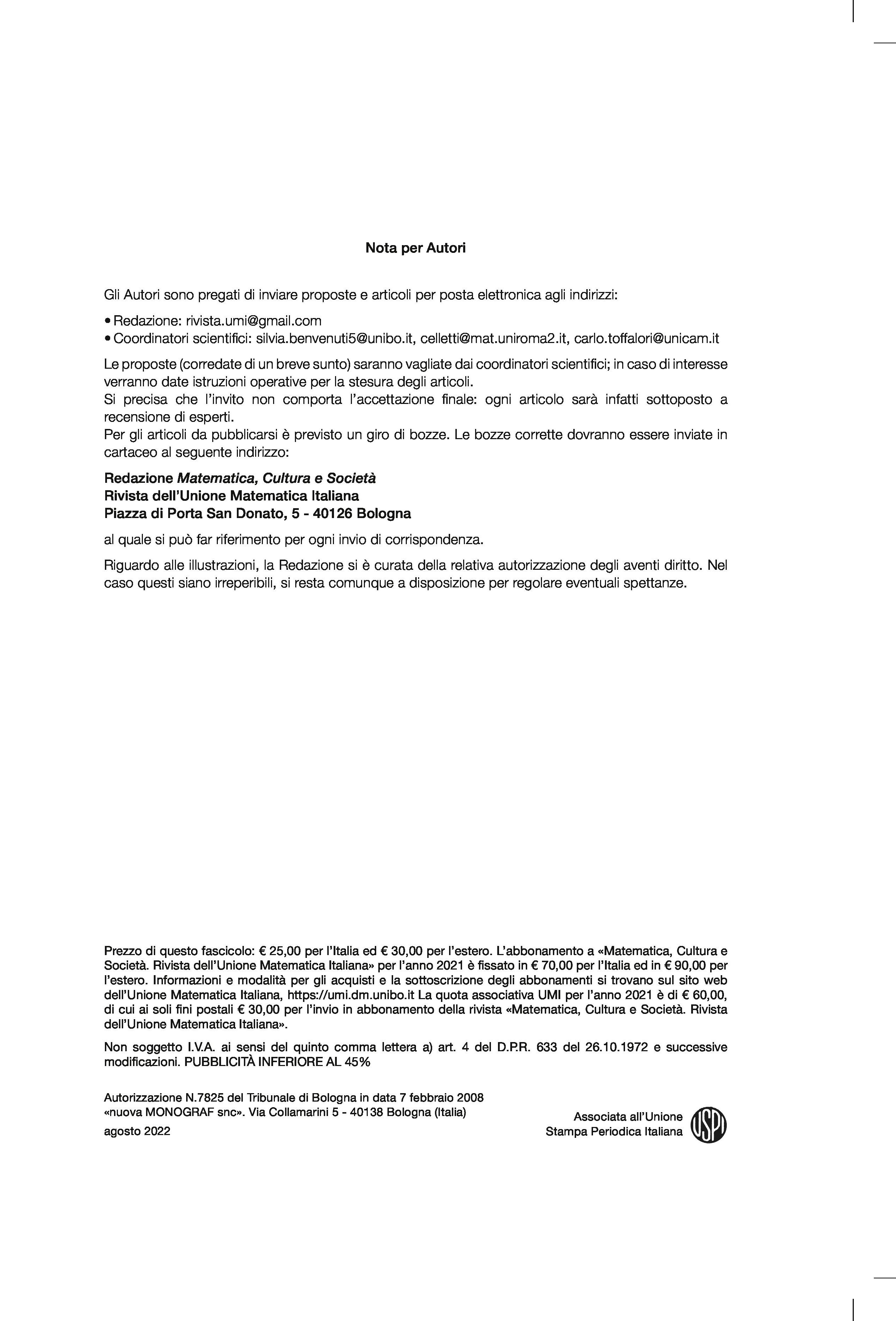 | Home -> Matematica, Cultura e Società, Serie 1 -> Vol. 7 (2022), n. 2 |