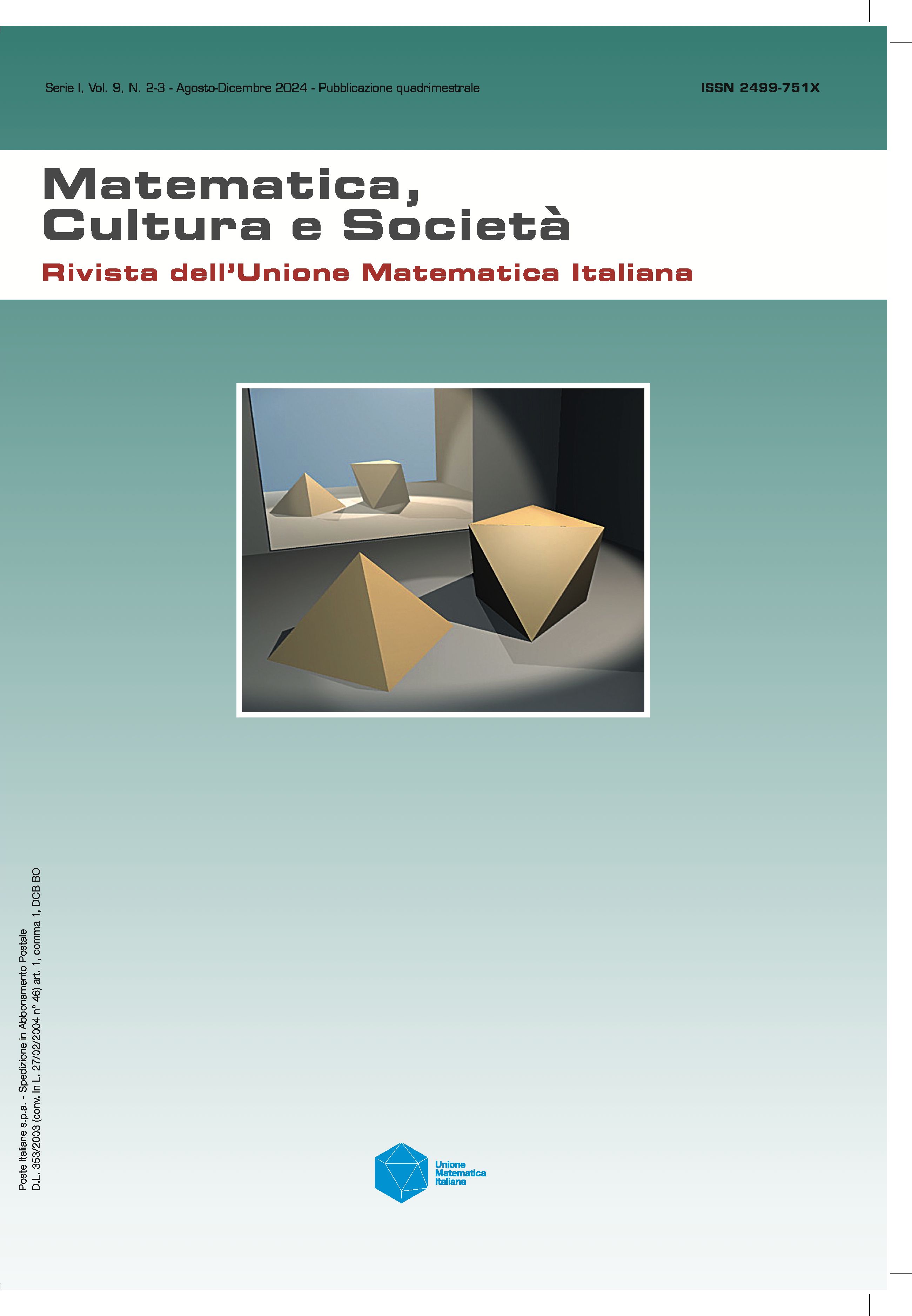 | Home -> Matematica, Cultura e Società, Serie 1 -> Vol. 9 (2024), n. 2-3 |